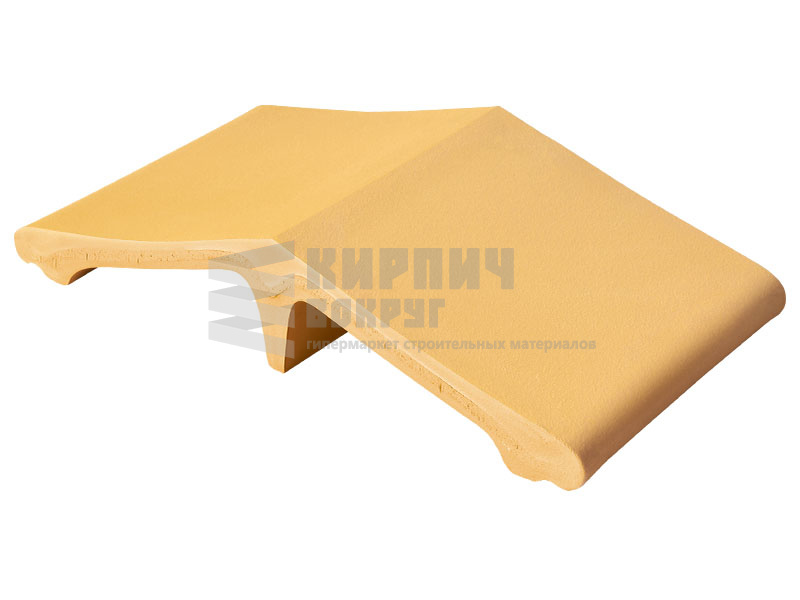 Клинкерный добор "Пустынная роза" - 10, Desert Rose для аналогичного колпака (оголовка) на забор производства King Klinker, находящегося в Польше, имеет размер 445x250x90 мм, цвет желтый. Используется для удлинения обычных колпаков в ограждении или заборе.